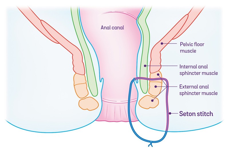 • Draining any abscesses with a seton
